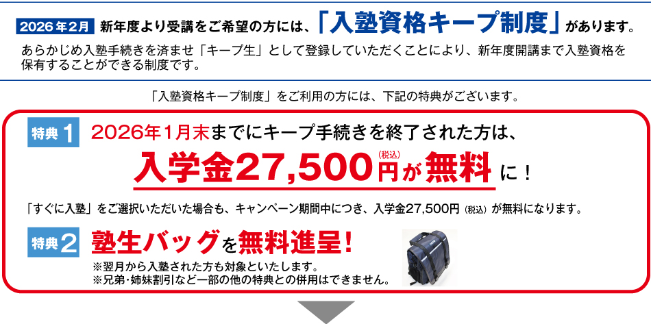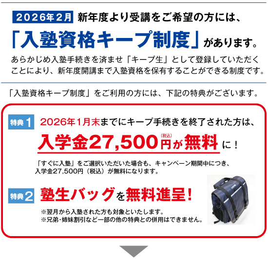 | 受講資格 | 2025年11月以降実施の該当教科資格認定テストに合格された方、または2026年9月以降の公開テストで該当教科偏差値50以上を取得された方に与えられます。 資格認定テスト お申し込みはこちら |