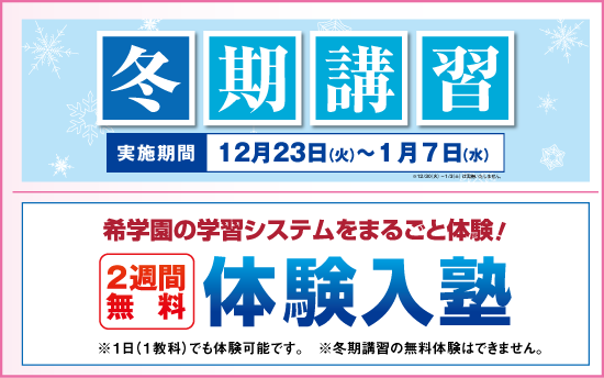 冬期講習 詳細・お申し込みはこちら 2週間体験入塾 詳細・お申し込みはこちら