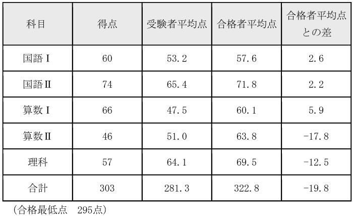 朝から気持ちが下がっていて落ち着きませんでした。予想していた合格最低点には届いていないと自己分析していたからです。それでも自分の目で結果を確認しようとパソコンをクリックしたら「合格」の二文字が飛び込んできました。予想していなかったので「え〜っ!?」としか言葉が出ませんでした。すぐに西川(大)先生に電話しました。岡本教室に向かい先生方に祝福してもらいました。とても嬉しかったです。四条烏丸教室の仲間とも喜びを分かち合いました。結果は以下の通りで得意な算数ではなくて苦手な国語Ⅰ、国語Ⅱが合格者平均点を超えていました。